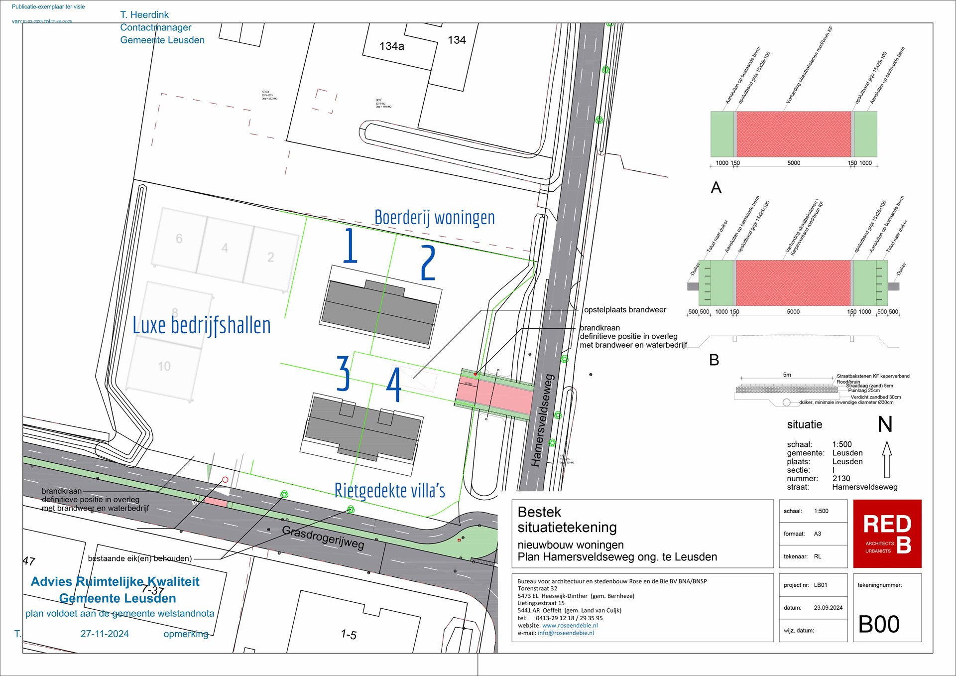 In het groene, landelijke buitengebied aan de zuidzijde van Leusden verrijst het exclusieve en kleinschalige Hof Hamersveld. Architectenbureau Rose en de Bie heeft een elegant ensemble ontworpen met twee stoere boerderijwoningen en twee halfvrijstaande, rietgedekte villa’s. Met een woonoppervlakte variërend van circa 156 tot 161 m2 heeft u de beschikking over een royale hoeveelheid ruimte, onder andere met een werkkamer op de begane grond en vier slaapkamers op de eerste verdieping. Het realiseren van diverse opties om de woning aan de passen is mogelijk, zoals het transformeren van de werkkamer in een slaapkamer met badkamer/doucheruimte op de begane grond. Er is veel maatwerk in de indeling mogelijk en vergrotingen (dat laatste mogelijk vergund).